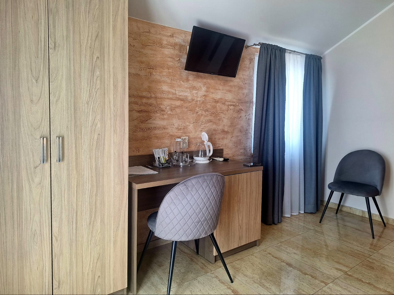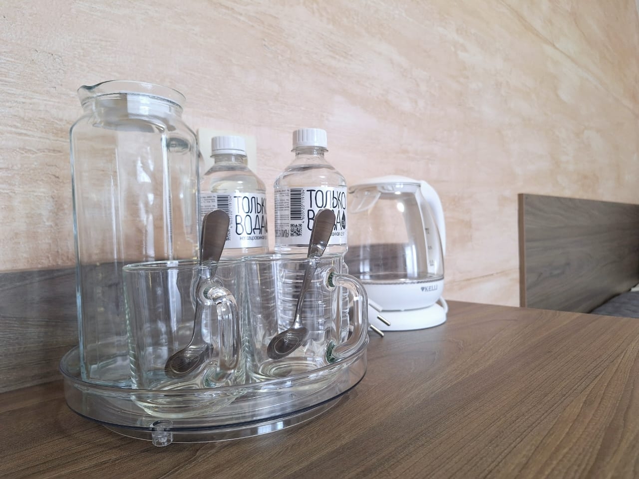 В каждой комнате есть сейф, электрический чайник, фен, санузел, душевая, ночные лампы, телевизор, мини-холодильник.