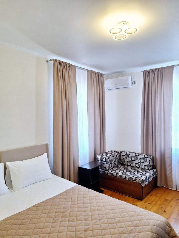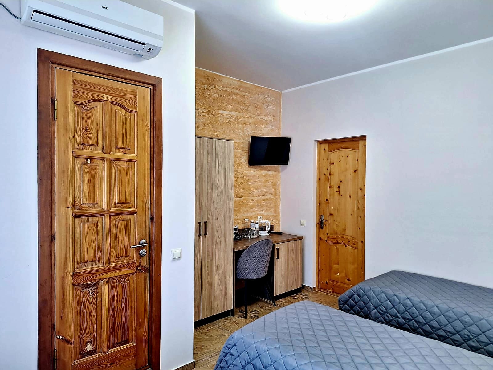 В КОТТЕДЖЕ «МАРИОН-1» уютные комнаты, в которых вы почувствуете заботу о вас в каждом моменте. Тапочки, гигиенические наборы (шампунь, гель для душа, мыло), полотенца - это далеко неполный список вещей, которые не нужно везти в чемодане из дома, собираясь на Черное море.